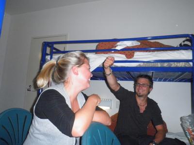 In der Nacht von Montag auf Dienstag klopfte es nachts ganz laut an der Tür und Marc öffnete. Mmh, keiner da. Er ging wieder ins Bett und es klopfte wieder. Er machte auf und da stand doch ein Mädel splitter faser nackt. Sie hatte sich wohl in der Tür geirrt, denn wir hörten es noch an den Nachbartüren klopfen.
