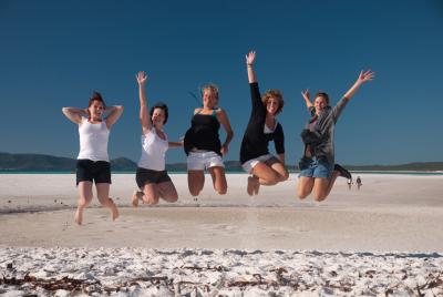 Angekommen in Airlie Beach sahen wir ein bisschen was von der Straße, wollten aber als erstes ein paar Travelbüros abfragen wegen einer Segeltour mit Schnorcheln. Wir fingen am Anfang der Straße an zu suchen und gingen gleich ins erste rein. Wir gingen zu der netten Dame am Empfang und fragten mal nach, ob denn am nächsten Tag eine recht günstige Tour ansteht. Sie fragte uns, ob wir heut auch könnten und Helen sagte schnell JA, dann sagte die Frau aber es wäre jetzt sofort und wir hätten nur 10 min Zeit. Helen antwortete wieder mit JA und wir waren alle ein bisschen geschockt denn wir müssten ja erst einmal was packen. Aber das ist halt last minute und wir zahlten nur 290$.UND, wir sind ja auf Abenteuertour. Wir rannten schnell zum Auto, aber nicht ohne noch Goone (Wein im 4l Tetrapack) zu besorgen :) Am Parkplatz hatten wir dann im Rekord unsere Rucksäcke am ganzen Parkplatz ausgebreitet und suchten einfach schnell nach was zum anziehen und was man so braucht für 2 Nächte im Paradies. Es ging alles viel zu schnell und wir hatten auch nicht wirklich nachgedacht was man braucht sondern einfach das erstbeste geschnappt und eingepackt. Wir rannten schnell zum Boot, denn das wartete nur auf uns… Das ganze Essen was noch im Auto ist, wird wohl leben wenn wir wieder zurück sind, denn unser Auto steht auch noch in der prallen Sonne. Egal, es blieb uns ja keine Zeit.