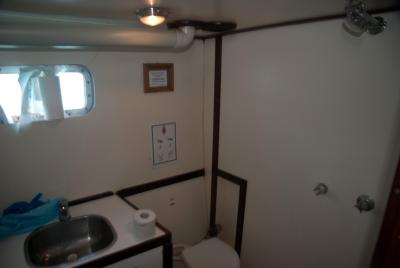 Das Frühstück war soweit vorbereitet und wir begannen zu essen. Danach wollte ich eine Dusche nehmen…aber das war diesmal gar nicht so einfach, denn wir segelten und man musste echt aufpassen dass man nicht umfällt. Ich versuchte es, aber das Wasser war kalt und das stehen war gar nicht so einfach. Nach dem duschen saßen wir an Deck und einer der Crew zeigte uns auf einem Plan wo wir überall gestoppt haben und übernachtet haben.