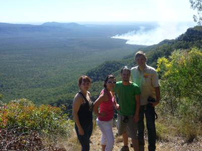 Angekommen ging es dann erstmal auf 900m Höhe hoch und wir sahen ein kleines Häuschen zum buchen für den Platz. Die sagte uns aber es sei leider alles voll… Na toll… Aber es blieb uns nichts anderes übrig, als hier zu bleiben, denn es war zu weit, irgendwo anders hin zu fahren. Wir schauten uns ersteinmal den Sonnenuntergang von einer traumhaften Aussicht an. Auch das Buschfeuer konnten wir sehen. Das machen die wohl hier zur Sicherheit für den Sommer.