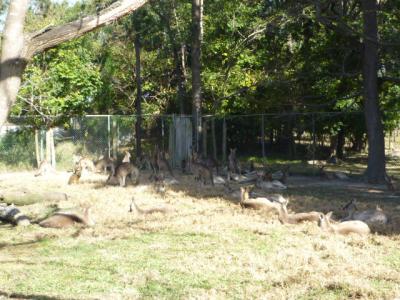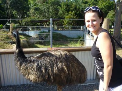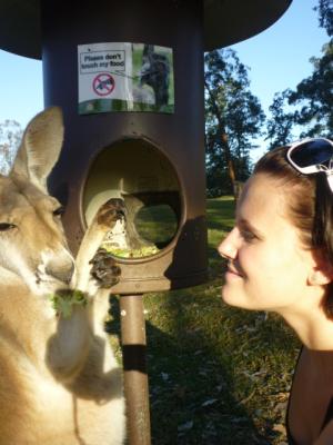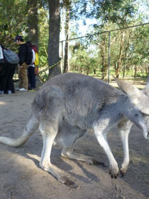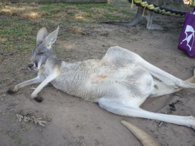 Ich sah viele Emu´s umherrlaufen und die sind sogar echt zam. Aber wenn die einen richtig angeschaut haben, geht man automatisch einen Schritt zurück denn der Blick sieht sehr böse aus. Ich wollte natürlich schnell zu den Kängurus die hier überall herumlagen. Unglaublich. Man geht zu ihnen hin und anstatt wegzuhüpfen bleiben sie einfach liegen und lassen sich streicheln. Eins von denen hatte sogar ein kleines im Beutel denn da schaute kurz ein kleines Köpfchen heraus.