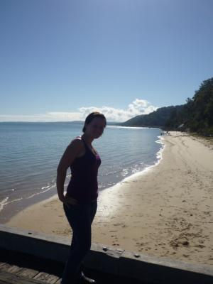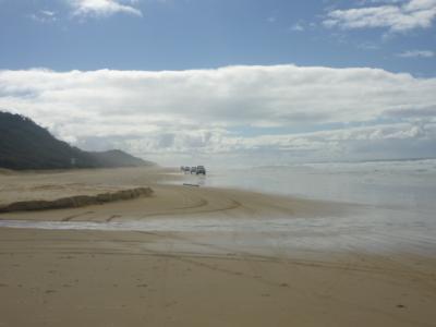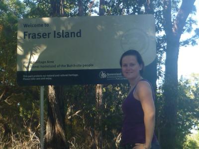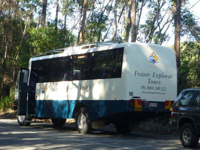Wir sind heute Morgen wieder um 8 Uhr aufgestanden und hatten gefrühstückt. Die Nacht war sehr kalt, ich denke sie lag bei nur 5 Grad. Aber dafür waren wir im Regenwald. Leider waren wir ein bisschen zu spät dran, denn wir mussten ja rechtzeitig bei der Fähre sein. Wir hatten echt ein traumhaft schönes Wetter und der Weg nach Kingfisher Bay war auch sehr lustig durch den Sand.
