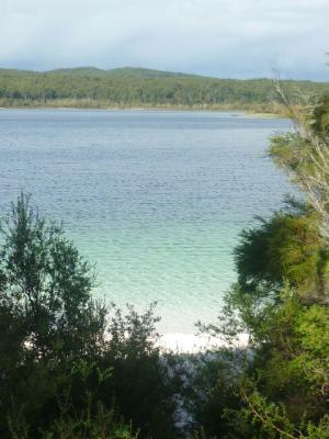 Das Wetter hatte es gut gemeint und es war wolkenloser Himmel, aber der Weg dorthin war Abenteuer pur! Es waren 12km, aber wir fuhren eine halbe Ewigkeit, denn auf den Sandverhältnissen ließ es sich nicht schneller fahren. Am Lake machten wir eine kurze Pause und gingen ein bisschen schwimmen. Das Wasser ist glasklar und man sieht den Himmel spiegeln. Als Wolken aufziehten, wurde es sofort kalt und wir machten uns auf den Weg zum nächsten Campingplatz mitten im Regenwald, was man auch sofort merkt, denn es ist kalt, nass und nicht wirklich hell. Und noch nie bin ich so früh ins Bett wie im Moment. Es ist jetzt kurz nach 21 Uhr und liegen im Bett, aber man kann auch nicht wirklich viel machen ohne Licht… Wir müssen morgen auch wieder um 7 Uhr raus denn wir müssen rechtzeitig bei der Fähre sein.