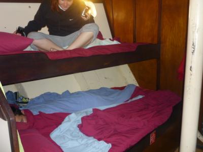 Am Abend war es echt sehr gemütlich denn wir saßen alle gemeinsam an Deck und tranken nebenbei unseren Wein. Ich fühl mich immer noch richtig wie in einem Traum. Gegen Mitternacht gingen wir alle „leicht“ betrunken zu Bett. Die Betten sind sehr klein und ich teil mir eins mit Helen und unter mir schlafen Chris und Bernat.