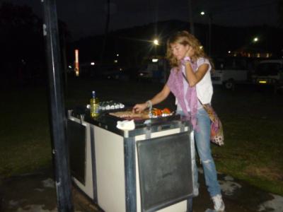 Wir drehten eine Runde über den Platz und es waren nur 7 Plätze und alle tatsächlich belegt. Also dachten wir uns, vielleicht könnte man sich ja wo dazu stellen und sahen ein älteres Ehepärchen. Helen spricht am besten Englisch, also fragte sich mal nach. Gott sei Dank sagten sie JA und wir bauten schnell unsere Zelte auf, denn diesmal blieben wir 2 Nächte und da schliefen wir auch im Zelt. Wir kauften für ein BBQ ein und fragten, ob wir uns mit an das Feuer setzen dürfen. Ich schnitzte mir wie früher ein Stock für meine Würstchen:) und legte los. Später hatten wir dann alles aufgelegt, aber wir waren so mit Essen beschäftigt, das der Mann sich um unser Essen gekümmert hat. Mal wieder hat sich bestätigt, dass die Australier um einiges freundlicher sind als die Deutschen.